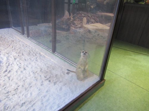 In the same area, they also had some colorful birds and green chameleons that blended with their surrounding vegetation. As for other land animals, further ahead in the aquarium was the meerkat enclosure, which is a big hit with visitors of all ages. This one seemed to be diligently standing guard.