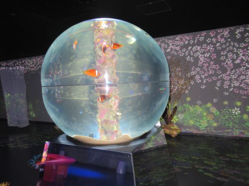 The chamber after the Forest was the White room, vibrant and somber at the same time. This room, like some others, has a distinct decoration scheme with props that change with the seasons. Case in point, the room above had a white Christmas tree since it was December, but were I to visit a few months later, I could imagine decorations related to Valentine’s Day or sakura season. It’s not just the rooms that are special, either—the Motomachi Aquarium also houses some unique tank shapes that let visitors view these marine organisms from interesting angles. Check out the clownfish in this spherical tank; this combined with the projected flowers in the background make the whole room a great selfie opportunity!
