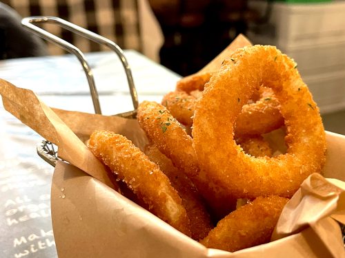 The à la carte burgers automatically come with fries and two onion rings, so when you order one of these side dishes you end up with even more fries and onion rings.