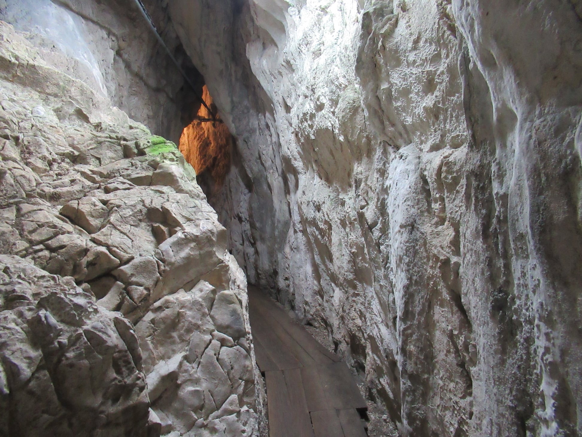 The temperature in the cave is kept at around 11 degrees Celsius throughout the year, and the footholds are wooden and stable, making it safe to visit. The cave walls are lined with stalactites of various sizes and shapes, and if you look carefully, you can find fossils of corals and other animals that lived in the Cretaceous Period. Furthermore, some of the geological formations may resemble common objects, such as this rabbit-shaped boulder.