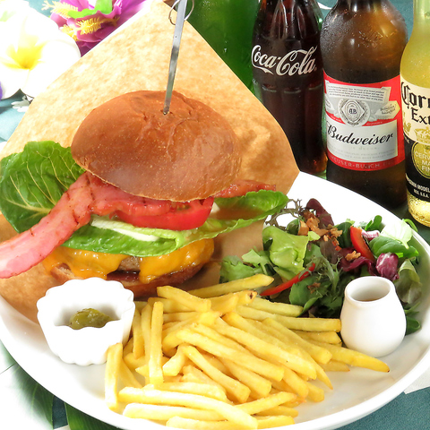 Hawaiian Dining Mauna Kea allows diners to enjoy authentic Hawaiian cuisine while in Hiroshima. Their signature hamburgers feature generous portions of ingredients rarely found in Japanese burger shops. The restaurant’s interior adorned with tropical plants creates a Hawaiian atmosphere, allowing customers to experience a feeling of being at a resort.