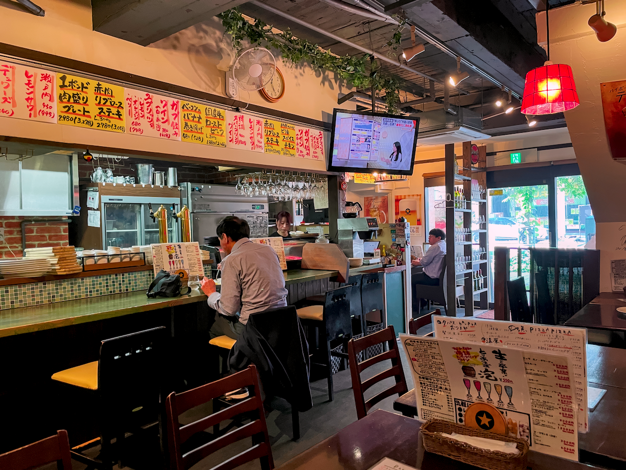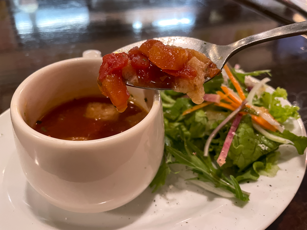 Discovering the pasta on the menu is Japanese fusion too. Remember the Peperoncino next to the Roast Beef Don on the lunch menu? That Peperonino is made with whitebait fish caught in the Seto Inland Sea. Just above it is another style of peperoncino served in the style of “dry” dan-dan noodles, a Hiroshima specialty where noodles are served on a platter beside a bowl of spicy sauce that you dip it in.