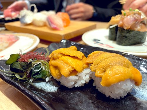 Located near Hiroshima’s Peace Memorial Park, Nonta Sushi is a local, kaiten (conveyor-belt) sushi restaurant from neighboring Yamaguchi Prefecture. With access to high-quality, local seafood, Nonta Sushi is frequently ranked above the other kaiten sushi shops in the city, which tend to be large, national chains with less overall quality.