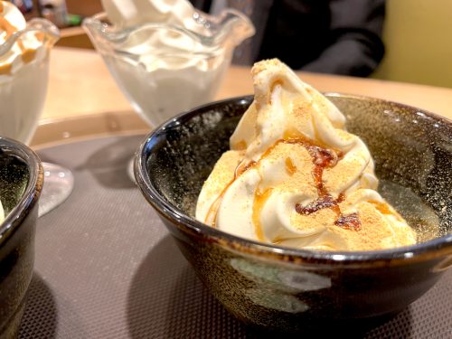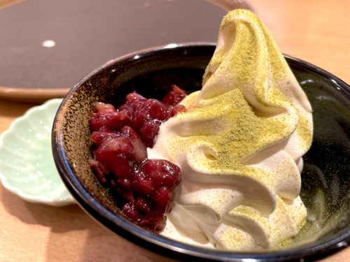 Green tea is part of kaiten sushi culture. It’s standard practice to find a hot water tap, a stack of yunomi tea cups, and a chazutsu container filled with powdered green tea. However, Nonta distinguishes itself here by serving powdered genmaicha, green tea with toasted brown rice, instead of the typical green tea or sencha. Genmaicha has the clean grassiness of green tea but with nutty, toasty, grain notes. And with just two scoops of tea powder per cup, it’s simple to make.