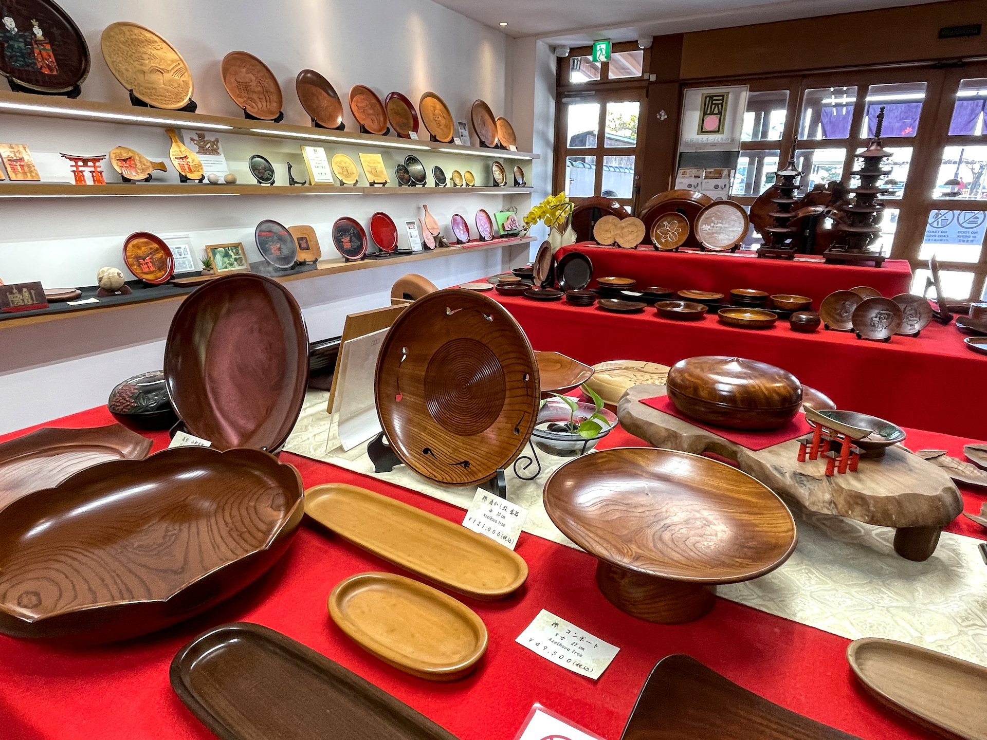 ¥2,750 buys a plain, varnished wooden plate that is 15 cm round. You’ll then be guided in how to carve it. To help are artisans like Hiroshi Ono whose work won the gold award at the 36th Miyajima Specialty Products Promotion Competition in 2010.